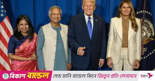 [ad_1] যুক্তরাষ্ট্রের প্রেসিডেন্ট ডোনাল্ড ট্রাম্পের সঙ্গে সাক্ষাৎ করেছেন প্রধান উপদেষ্টা ড. মুহাম্মদ ইউনূস। তাদের সাক্ষাতের একটি ছবি প্রকাশ করেছে প্রধান উপদেষ্টার প্রেস উইং।  ছবিতে ডোনাল্ড ট্রাম্প এবং ফার্স্টলেডি