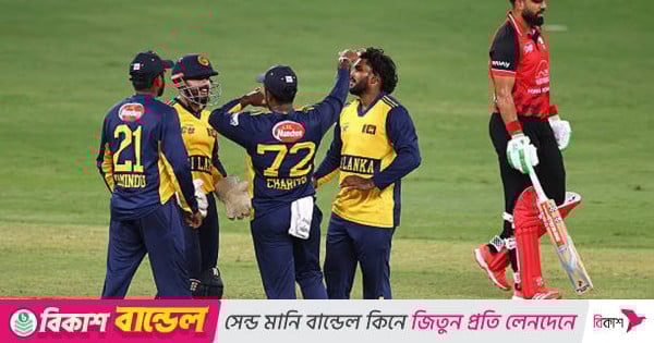 [ad_1] তিনবার জীবন পেয়ে ৬৮ রানের ইনিংস খেললেন পাথুম নিসাঙ্কা। শেষের গুরুত্বপূর্ণ সময়ে ফ্রি হিটে ছক্কা মারলেন ওয়ানিন্দু হাসারাঙ্গা। শঙ্কা কাটিয়ে হংকংয়ের বিপক্ষে জয় পেল শ্রীলঙ্কা। ‘বি’ গ্রুপের